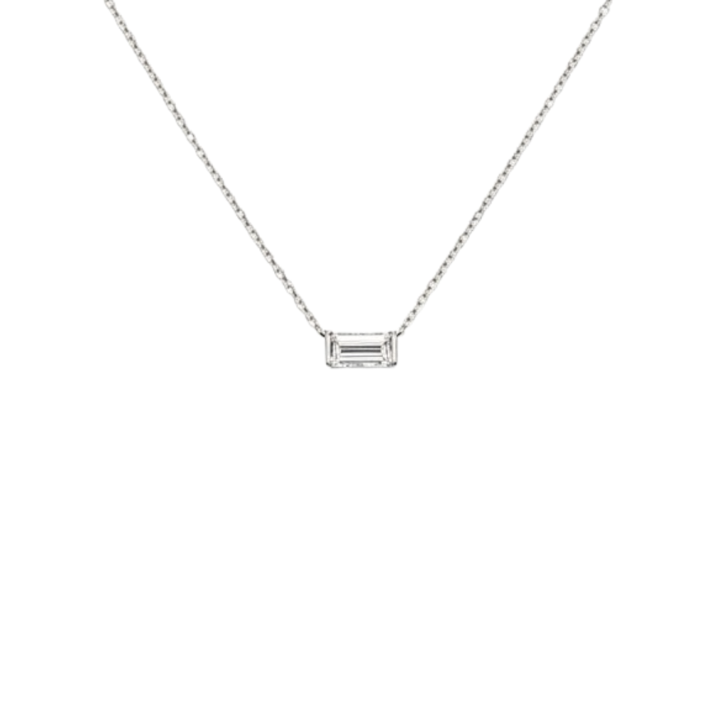 Review 14KW DIA 0.70 EMERALD CUT DIAMOND (SI/G) SET IN HALF BEZEL PENDANT