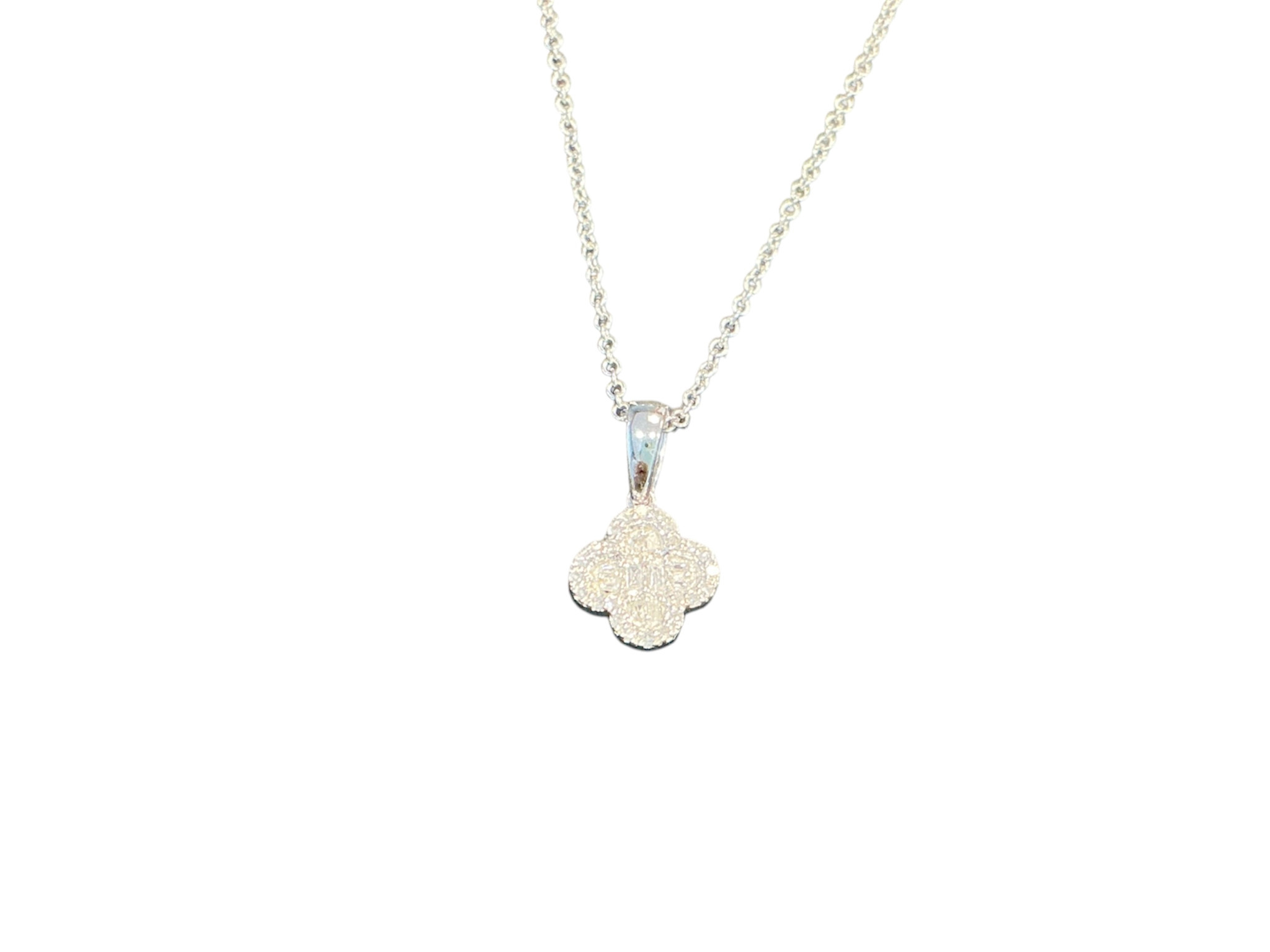 Review (Y)10K 0.10CT DIAMOND CLOVER LEAF PENDANT IN WHITE GOLD