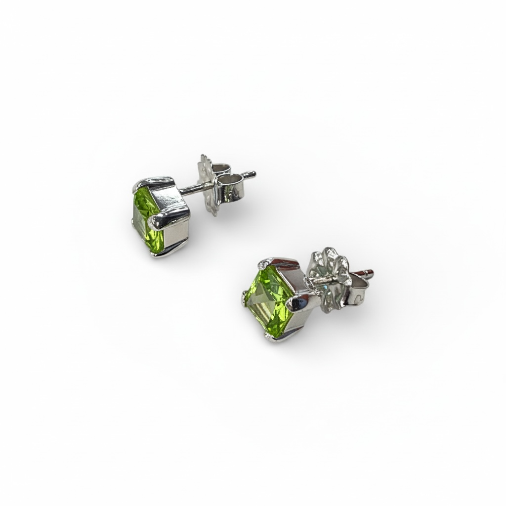 Review (Y)925 PERIDOT STEP CUT STUD SILVER PUSH BACK EARRINGS