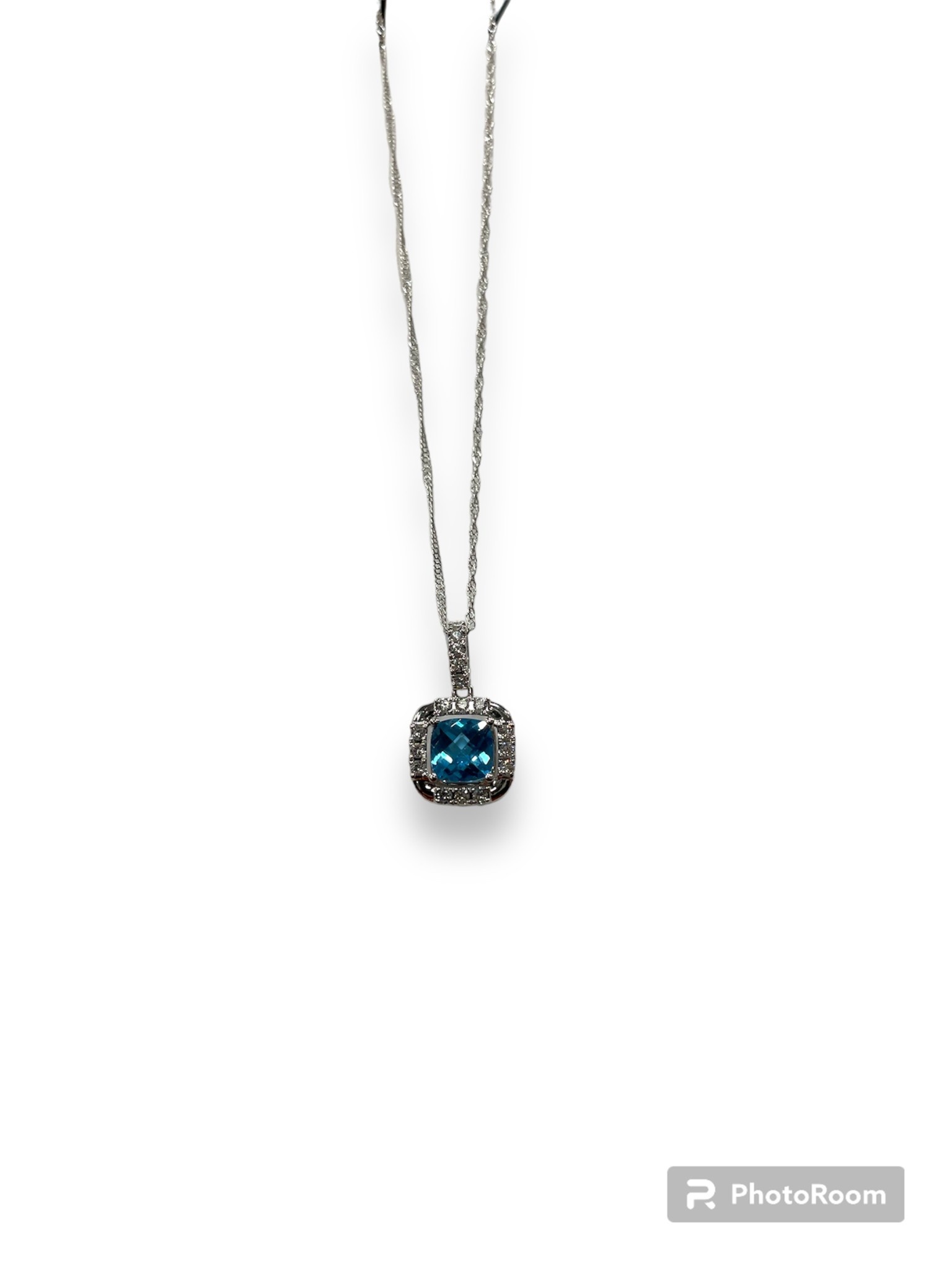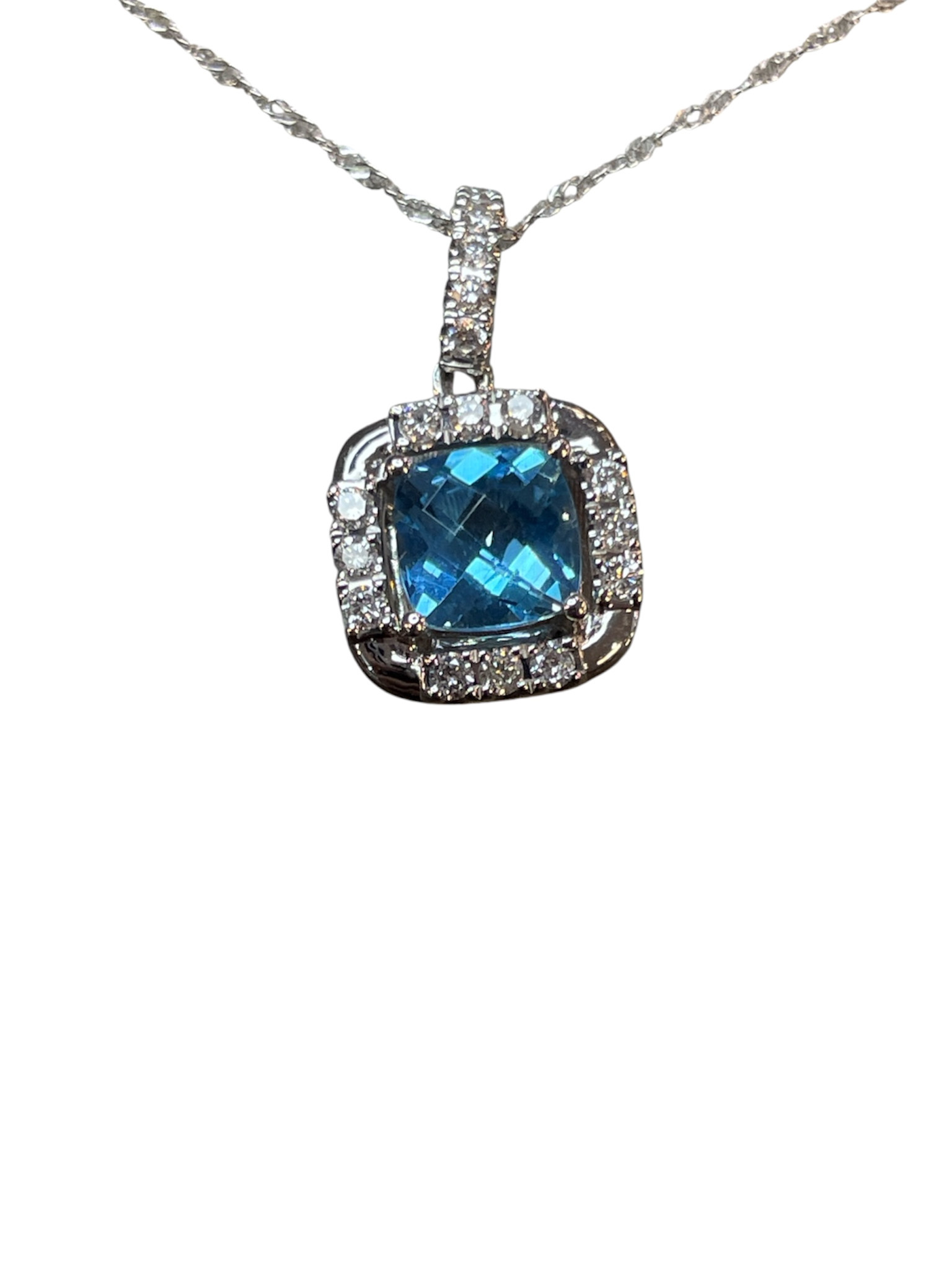 Review (R)14KW 1.07CT .19TW BT DIA CHECKERBOARD CUSHION CUT HALO PNDT 16” SINGAPORE CHAIN 14KT WHITE GOLD