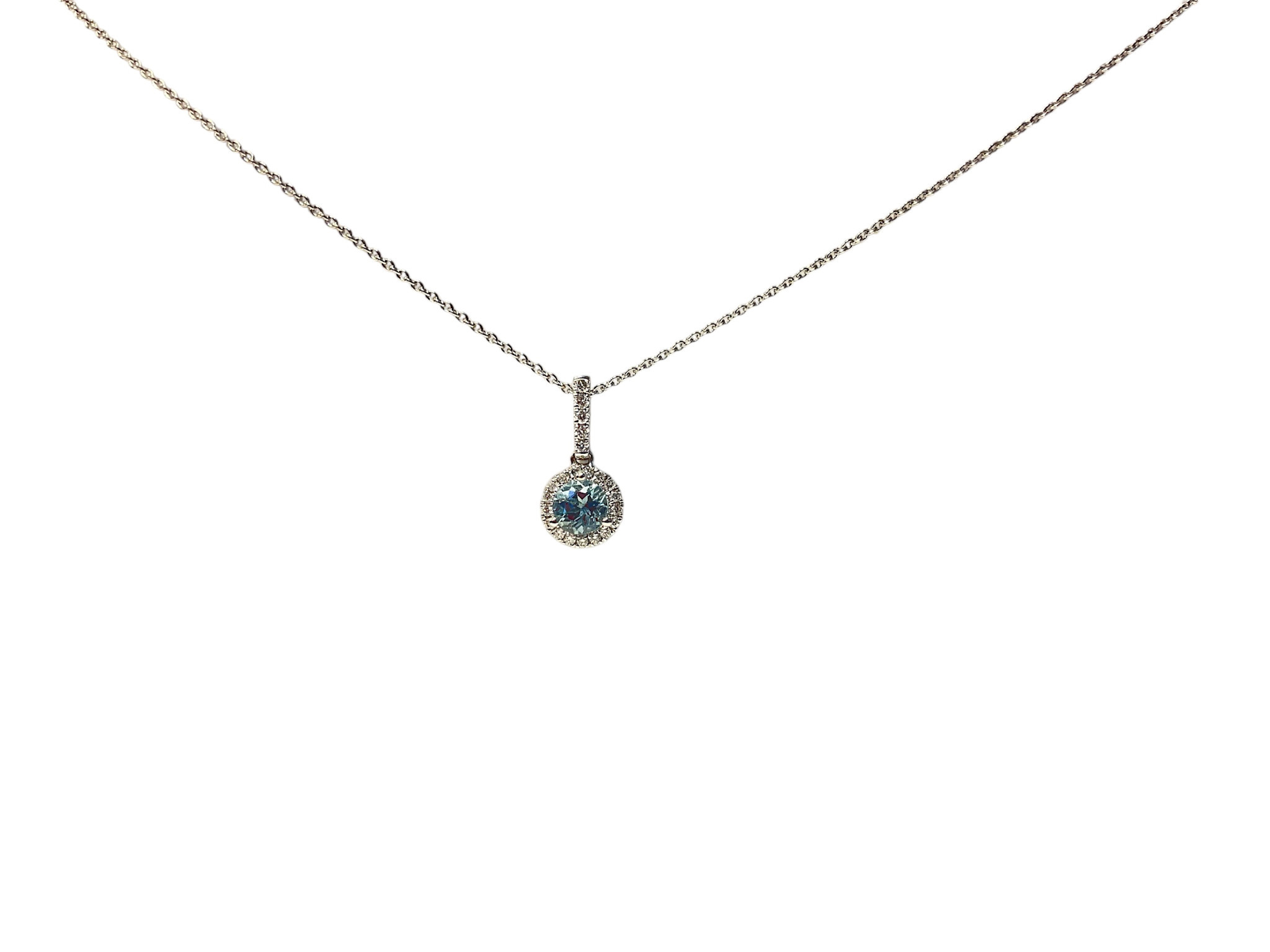 Review (R)14KW .31CT AQ .09TDW DIAMOND AQUAMARINE ROUND WHITE GOLD 18” CABLE CHAIN PENDANT