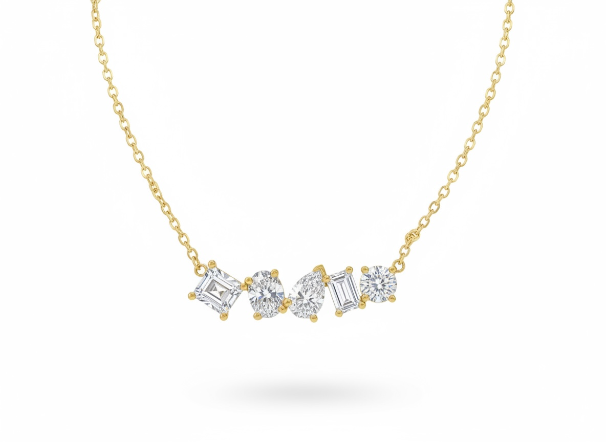 Review (R)18KY LG 1.50CT LAB GROWN DIAMOND SHAPE ASSORTMENT NECKLACE, PRINCESS, EMER, ROUND, PEAR, OVAL