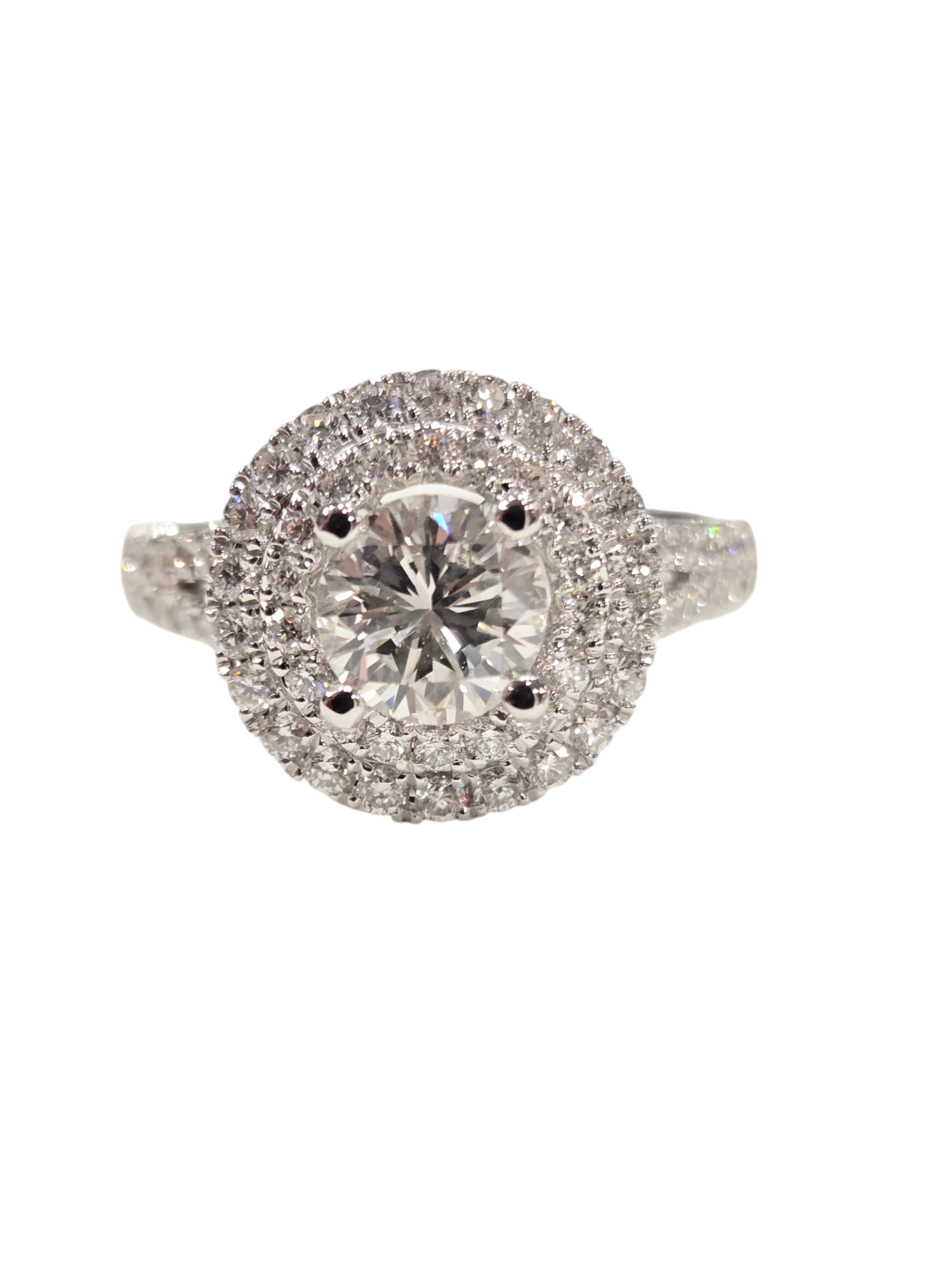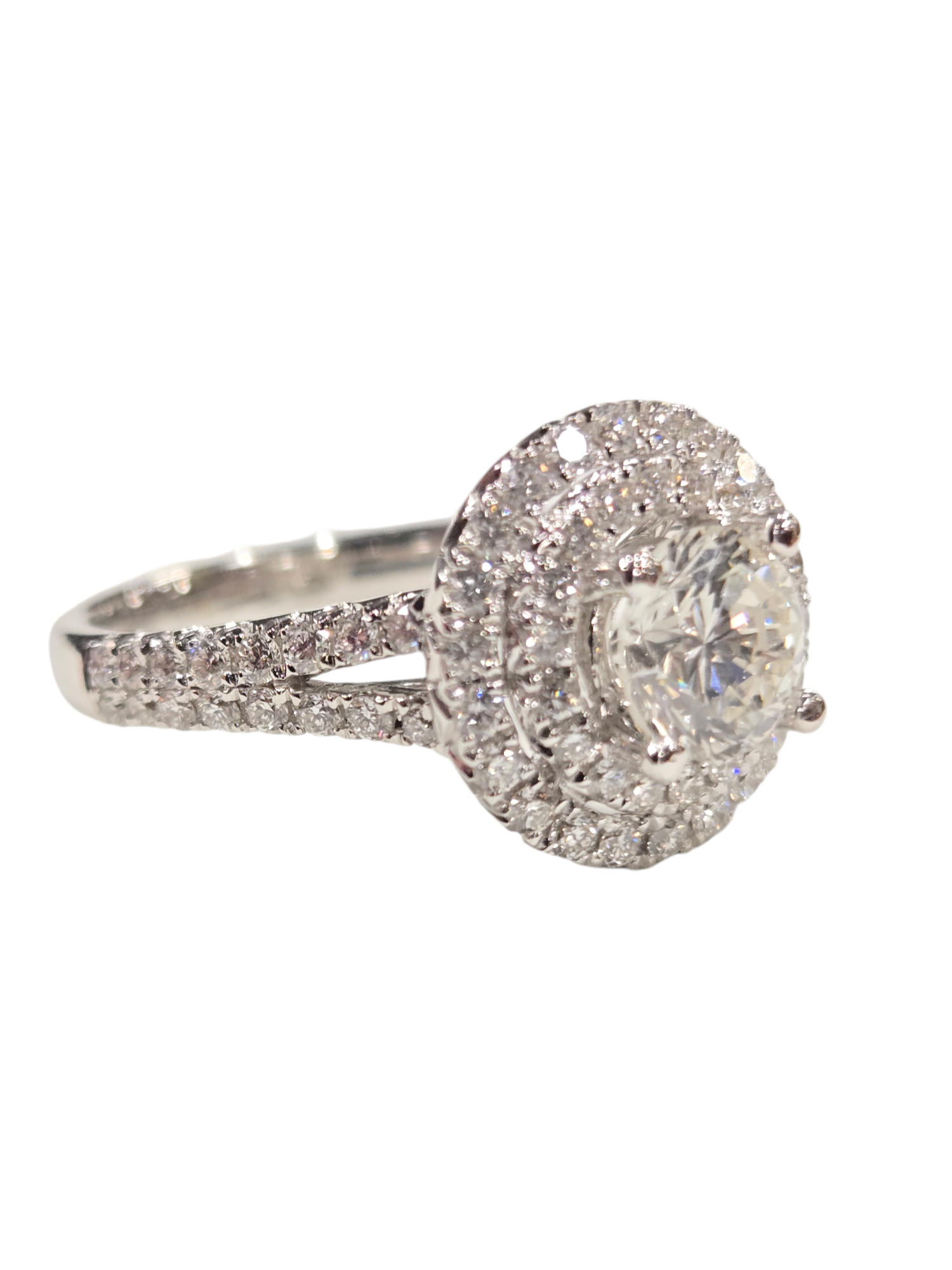 Review (X) 14K .94CT VS2 J .79MTG WHITE GOLD DOUBLE HALO BRIDAL RING NATURAL DIAMONDS