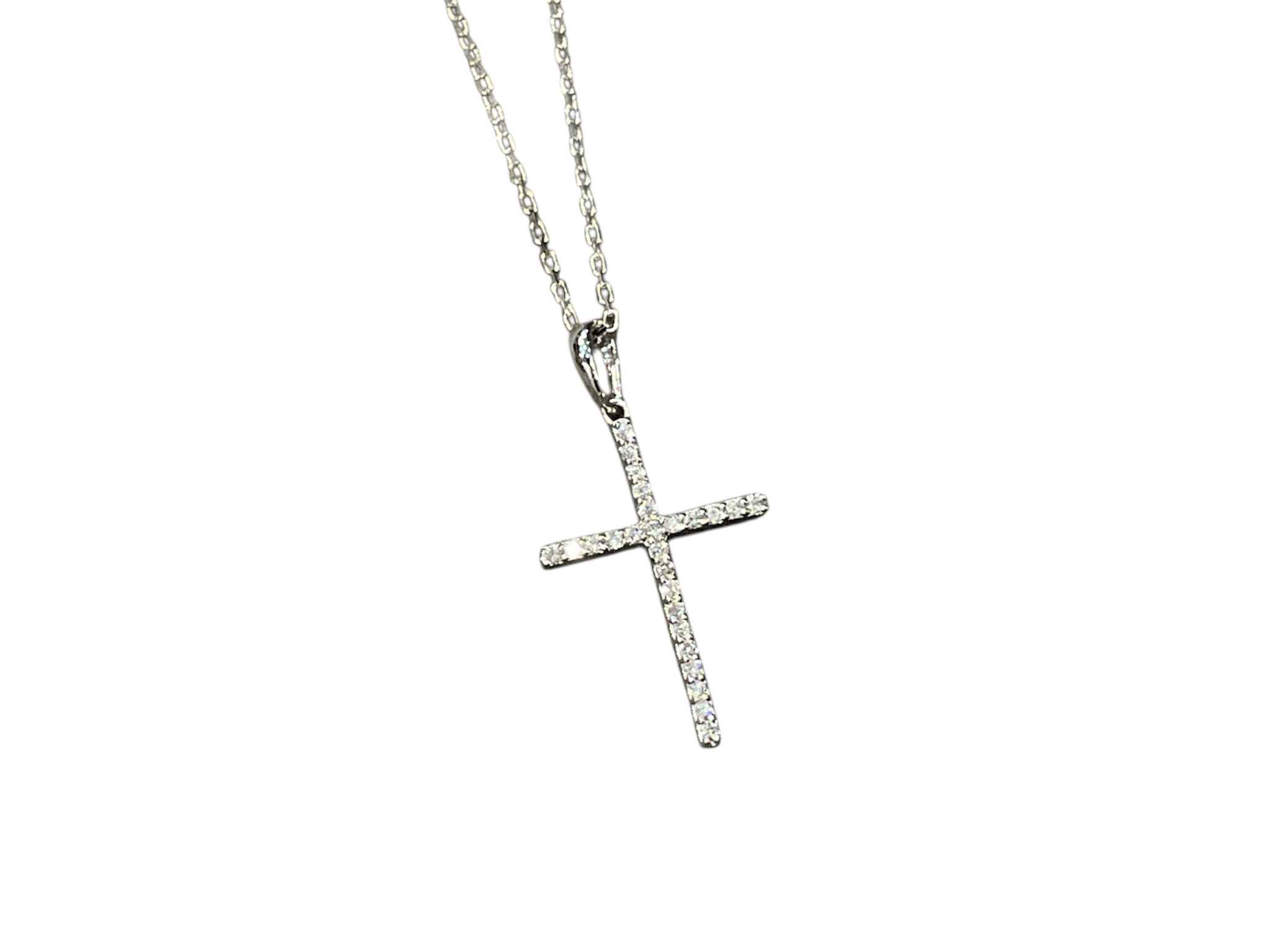 Review (Y)14K 0.12CT DIA, CROSS PENDANT ON WHITE GOLD CHAIN AND DIAMONDS, LOBSTER CLASP