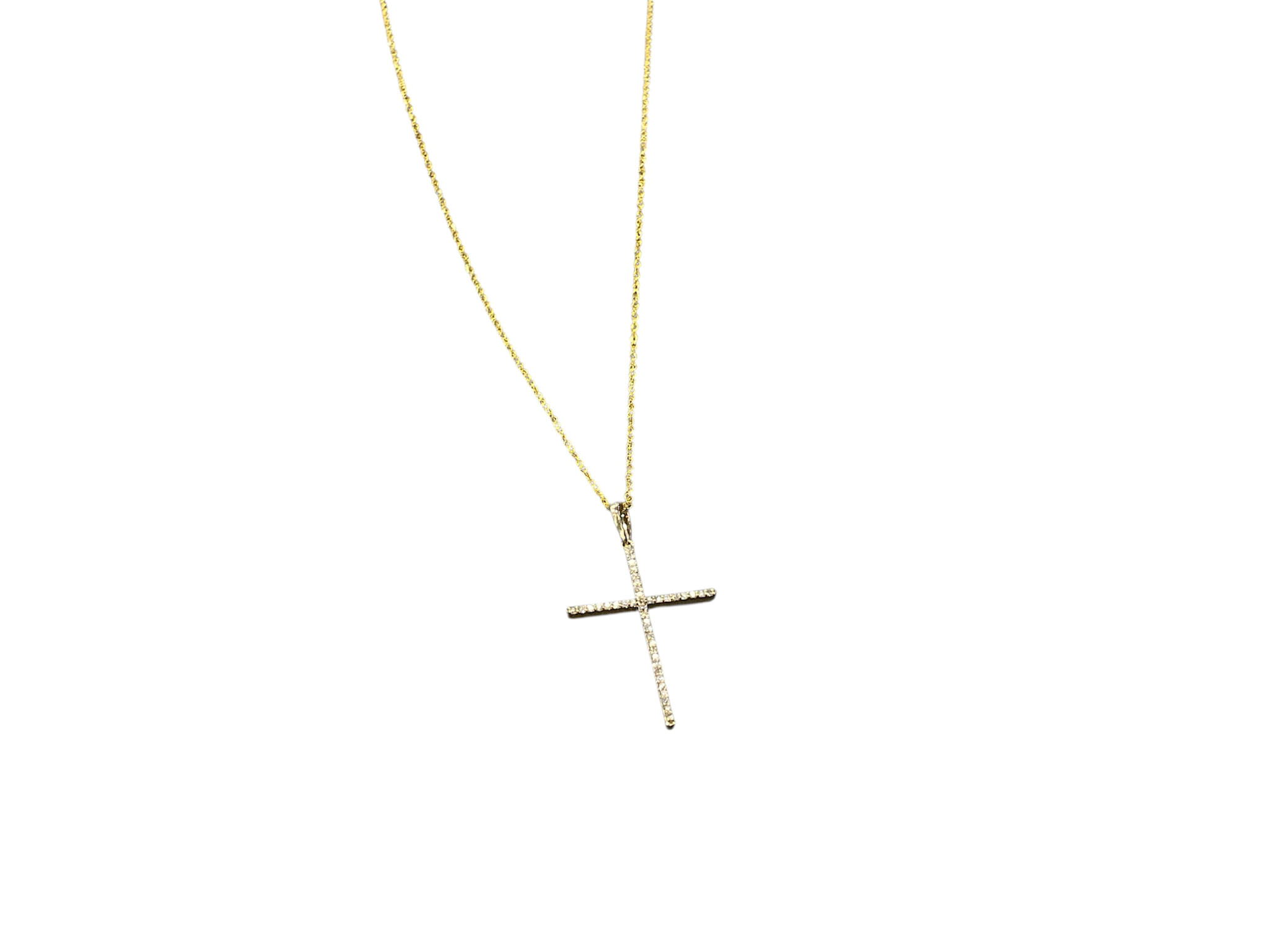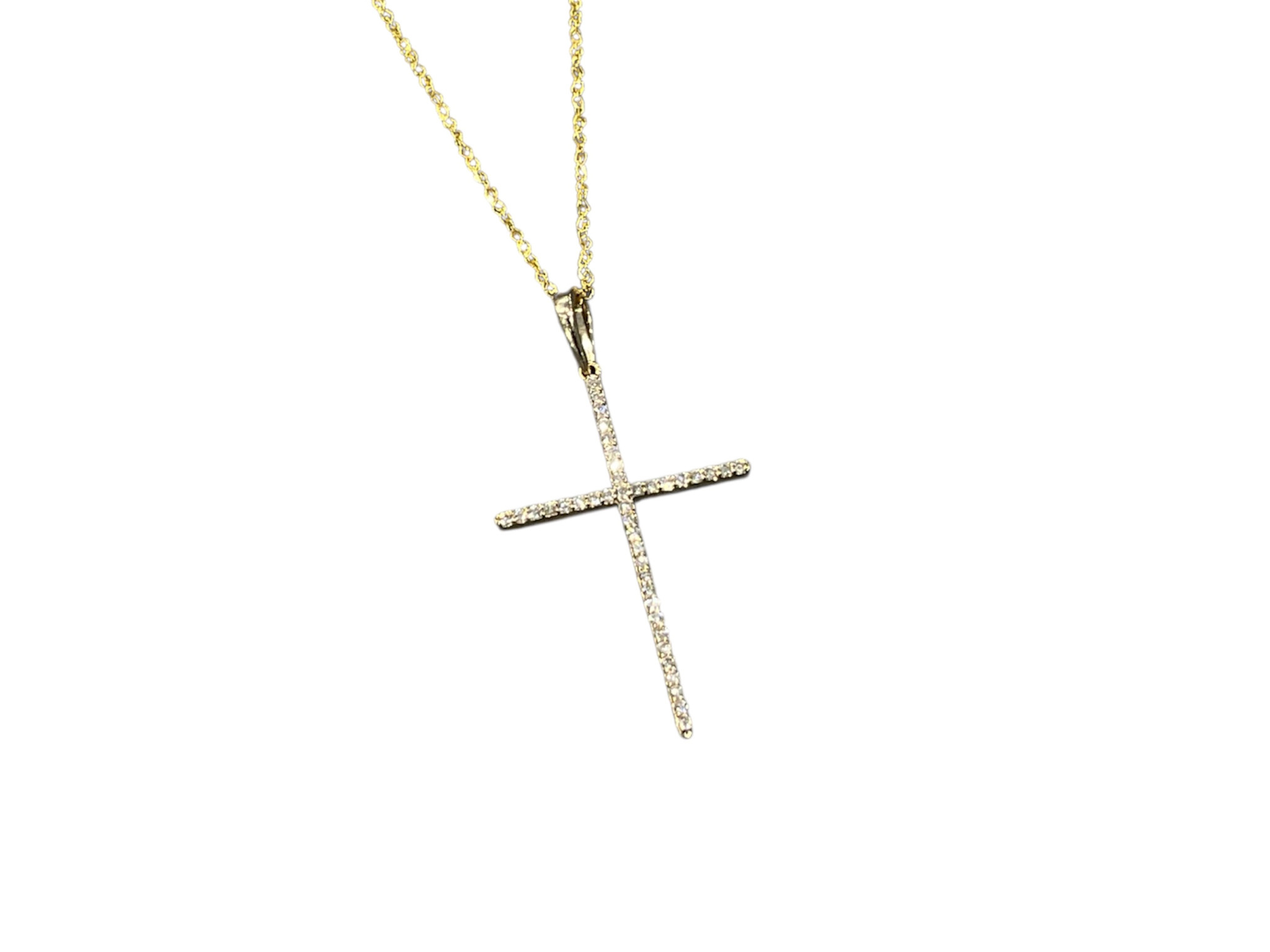 Review (Y)14K 0.13CT DIA, CROSS PENDANT ON YELLOW GOLD CHAIN WITH DIAMONDS, DIAMOND CUT CHAIN, SPRING CLASP