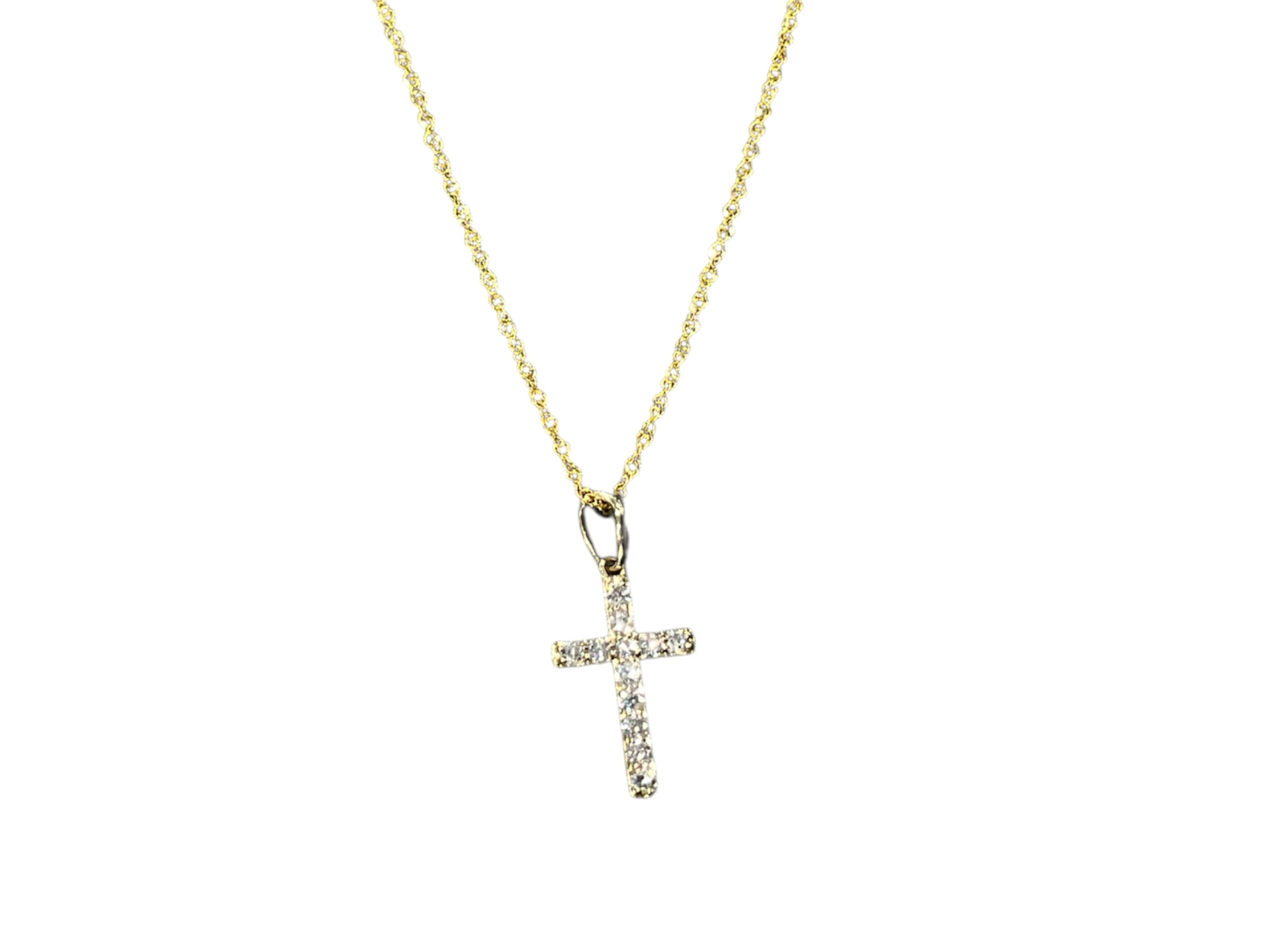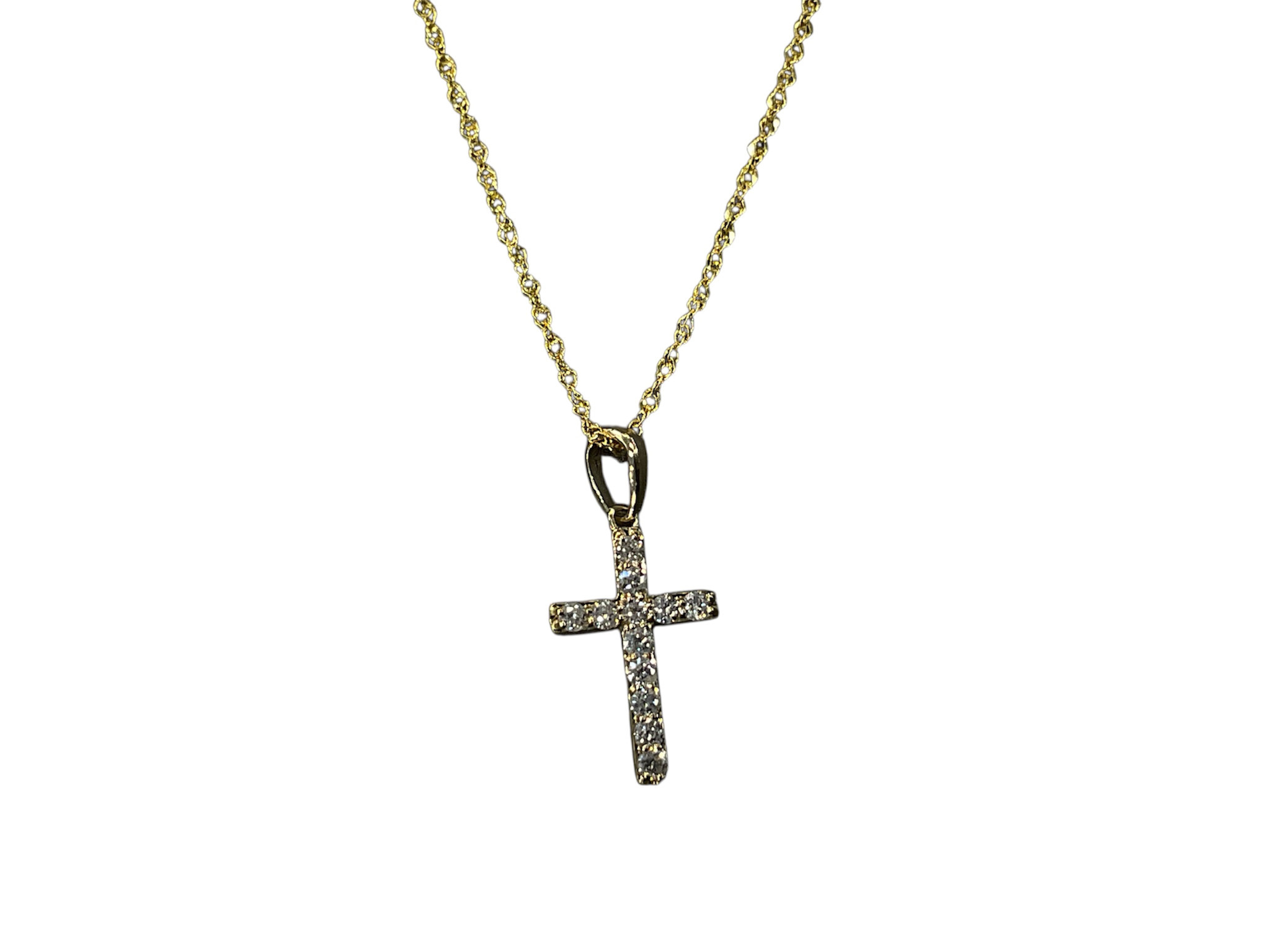 Review (Y)14K 0.14CT DIA, YELLOW GOLD CROSS PENDANT ON DIAMOND CUT CHAIN, SPRING CLASP