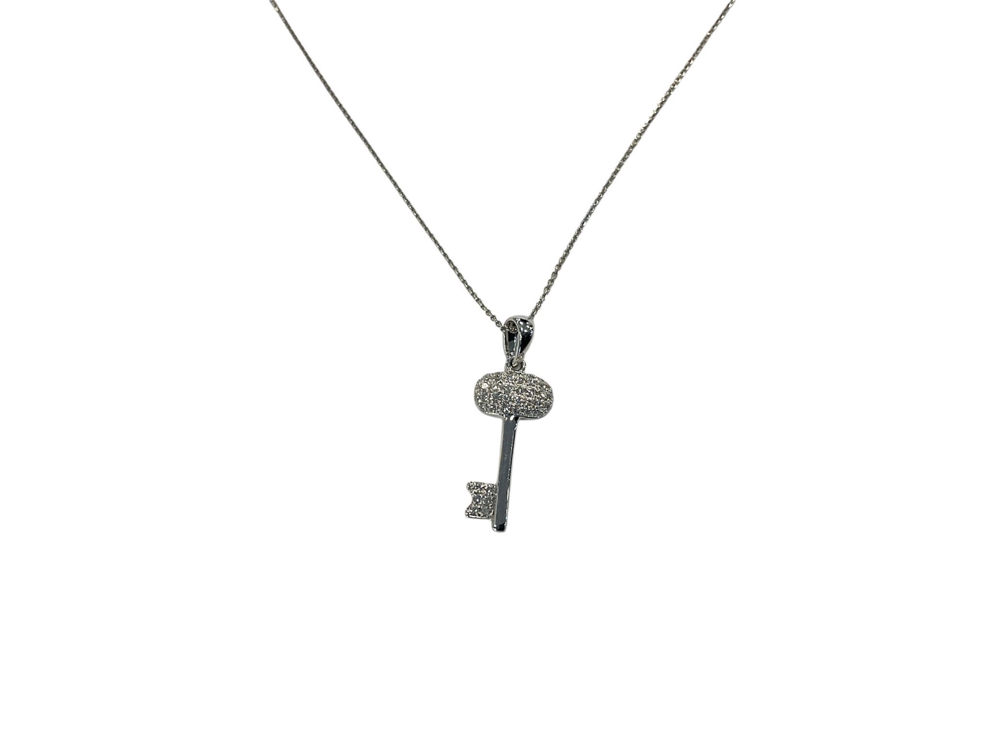 Review (Y)14K 0.16CT DIAMOND, KEY PENDANT ON WHITE GOLD CHAIN WITH SPRING CLASP