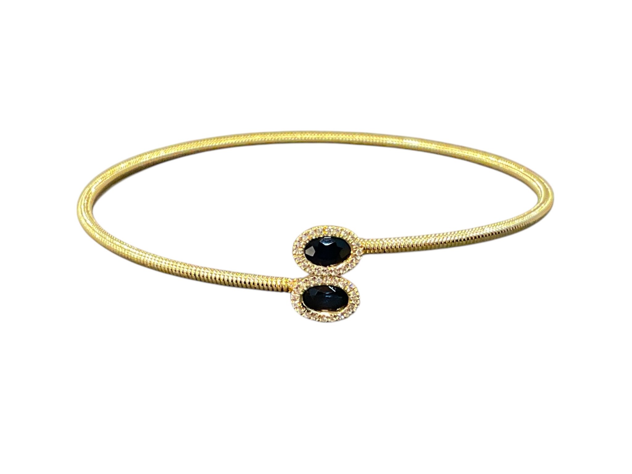 Review (Y)14K 1.23CT SAPP 0.11CT DIA, DIAMOND AND BEZEL SET OVAL SAPPHIRE BANGLE