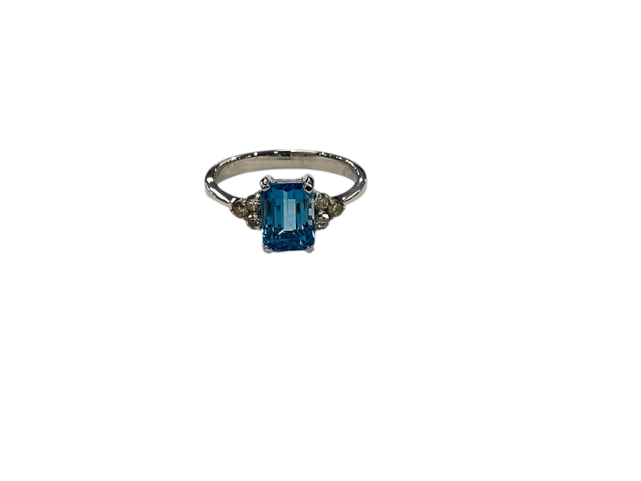 Review (Y)14K 2.00 BT 0.20 DIA, BLUE TOPAZ AND DIAMOND WHITE GOLD RING