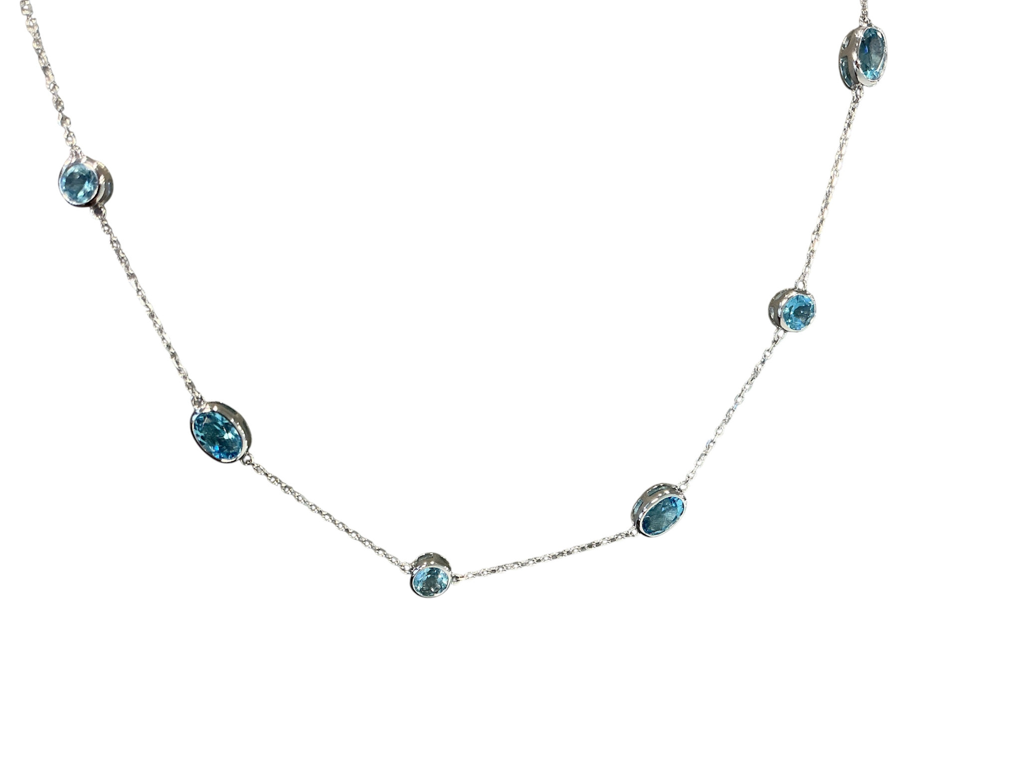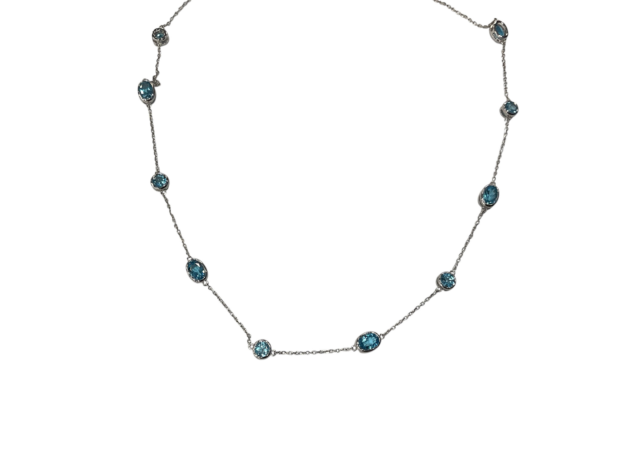 Review (Y)14K 4.76 SWISS BLUE TOPAZ BEZEL SET BY THE YARD WHITE GOLD NECKLACE