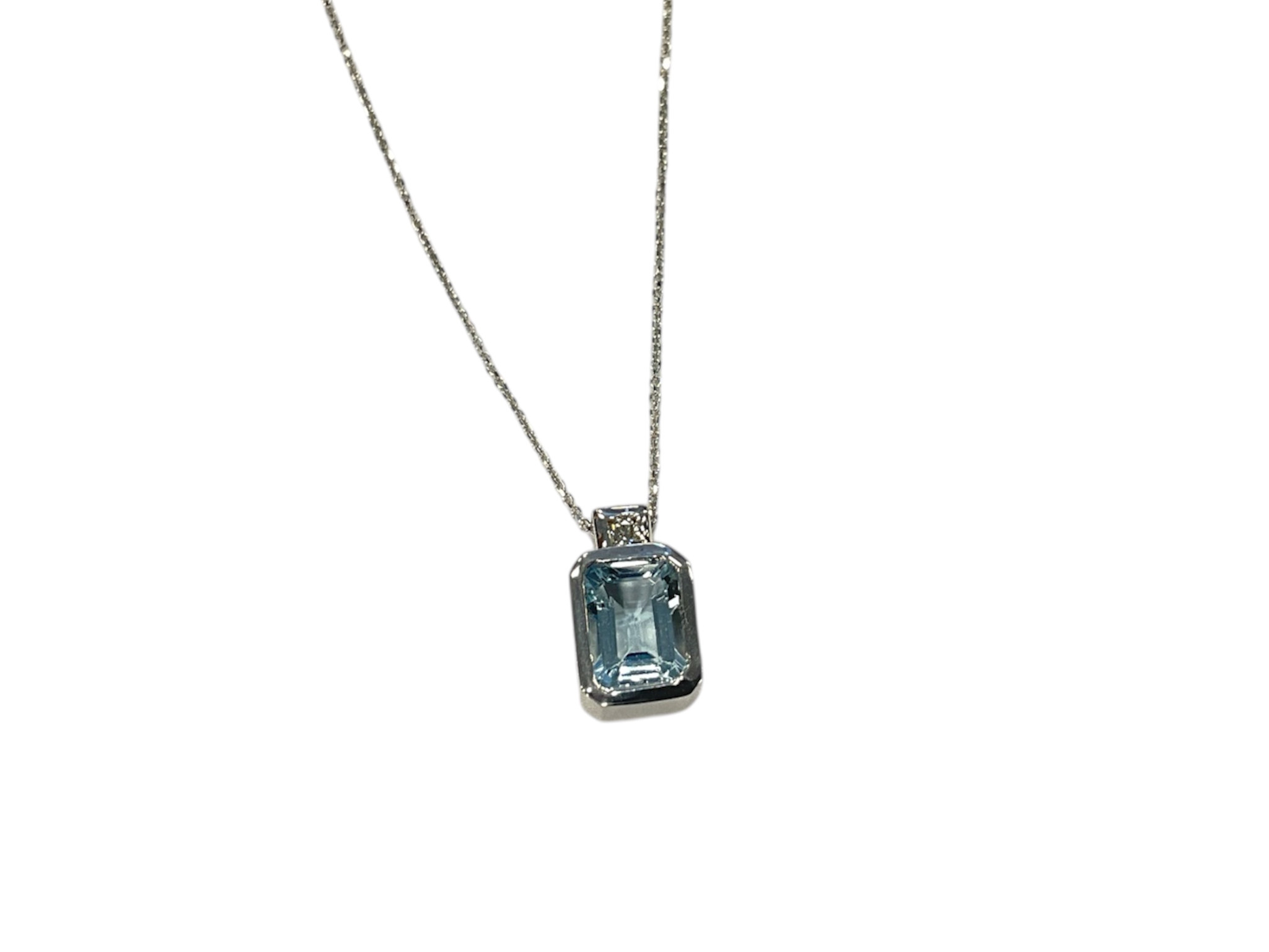 Review (Y)14K AQ 1.00 DIA 0.03, AQUAMARINE AND DIAMOND PENDANT ON WHITE GOLD CHAIN