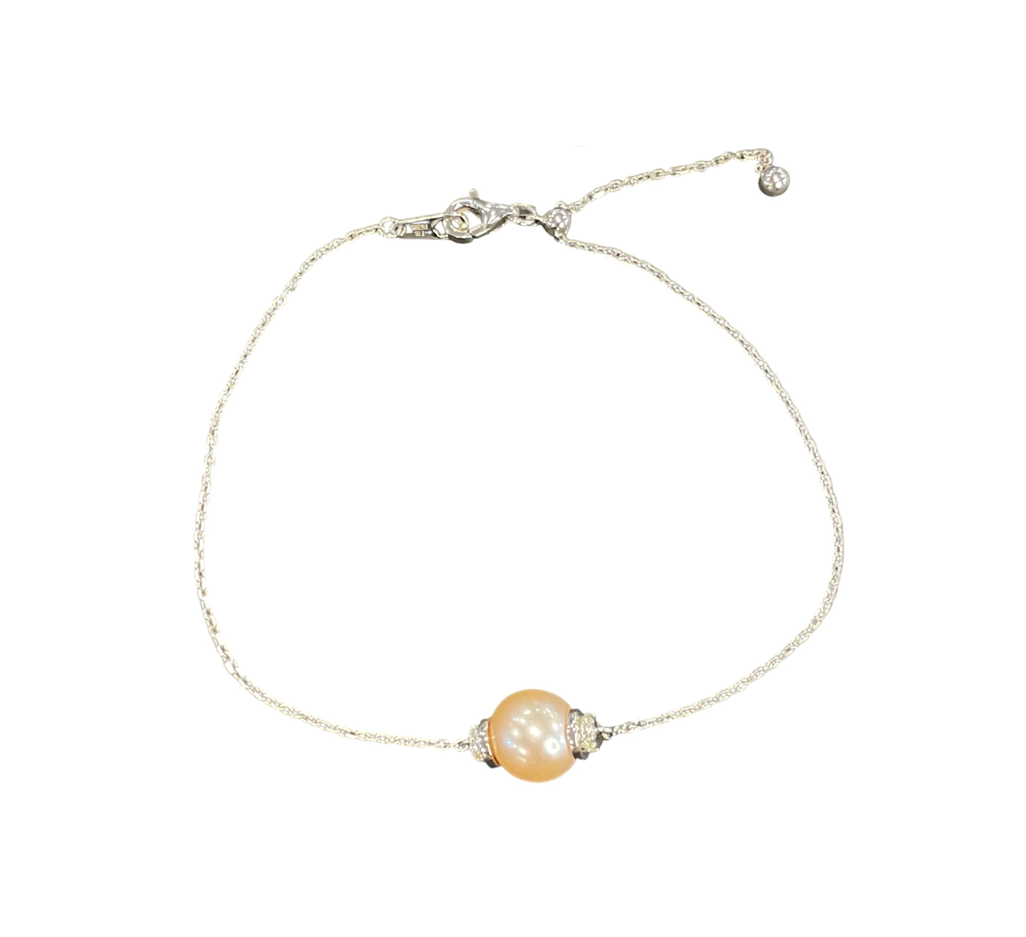 Review (Y)14KW 0.08TW 10MM ROSE PEARL W/DIAMOND SINGLE STATION CABLE CHAIN ADJUSTABLE WHITE GOLD BRACELET