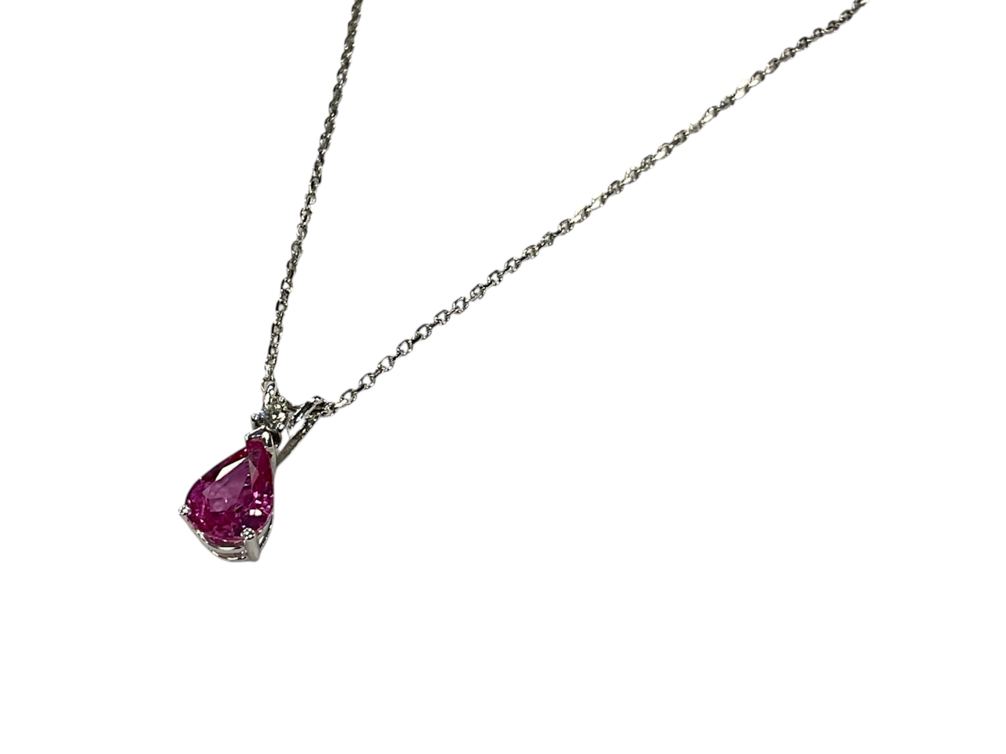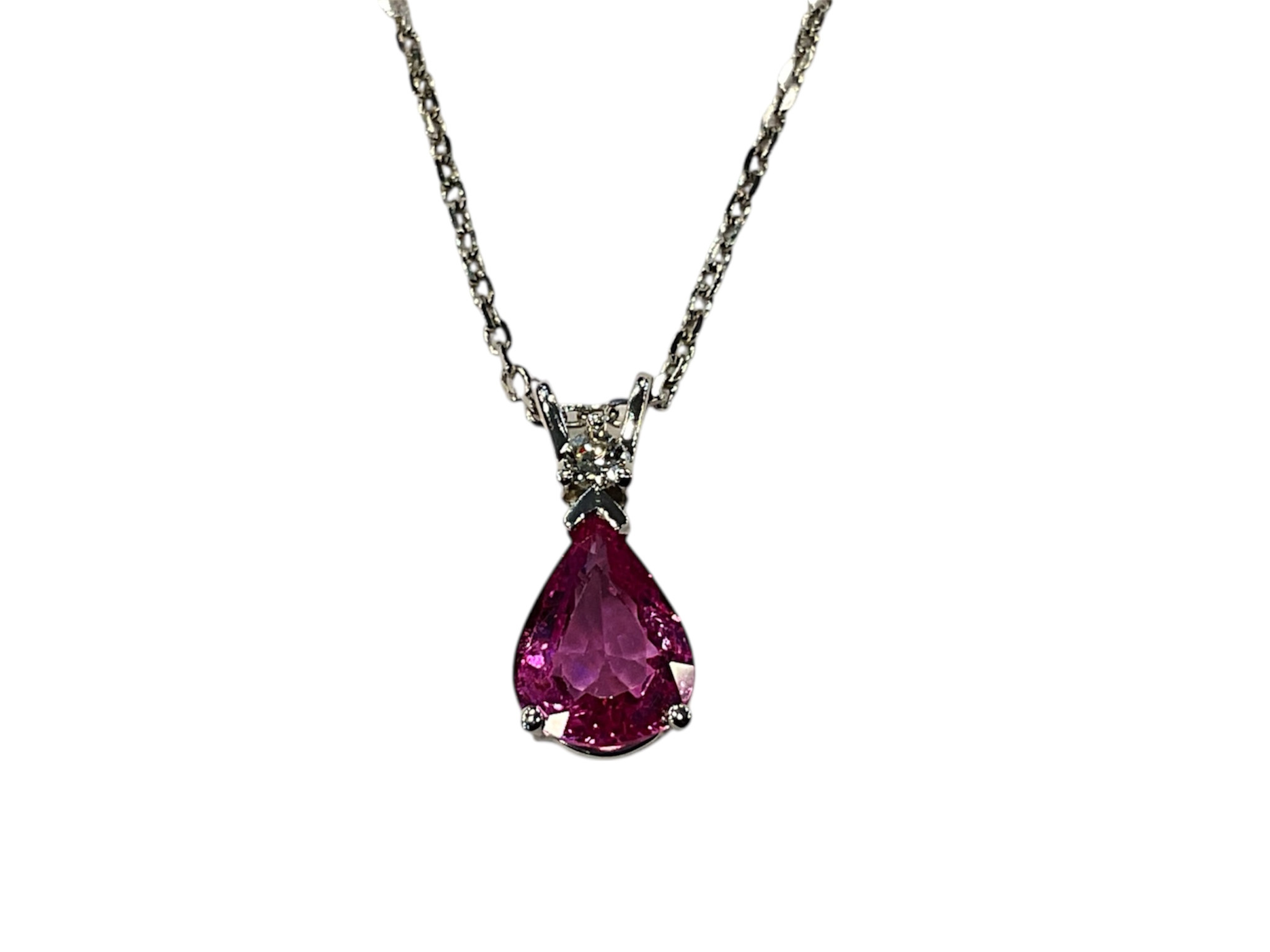 Review (Y)14K PS 1.20 DIA 0.04, PINK SAPPHIRE AND DIAMOND PENDANT ON WHITE GOLD CHAIN
