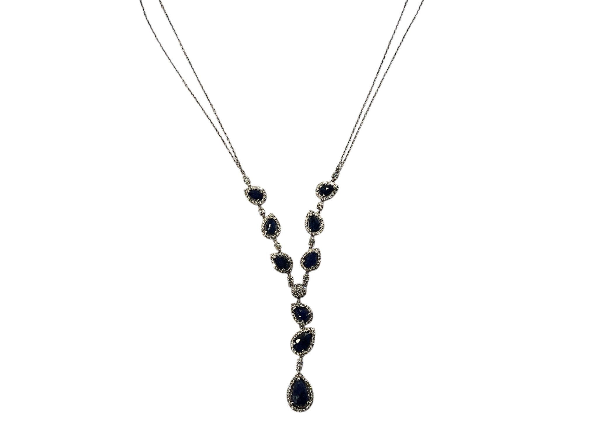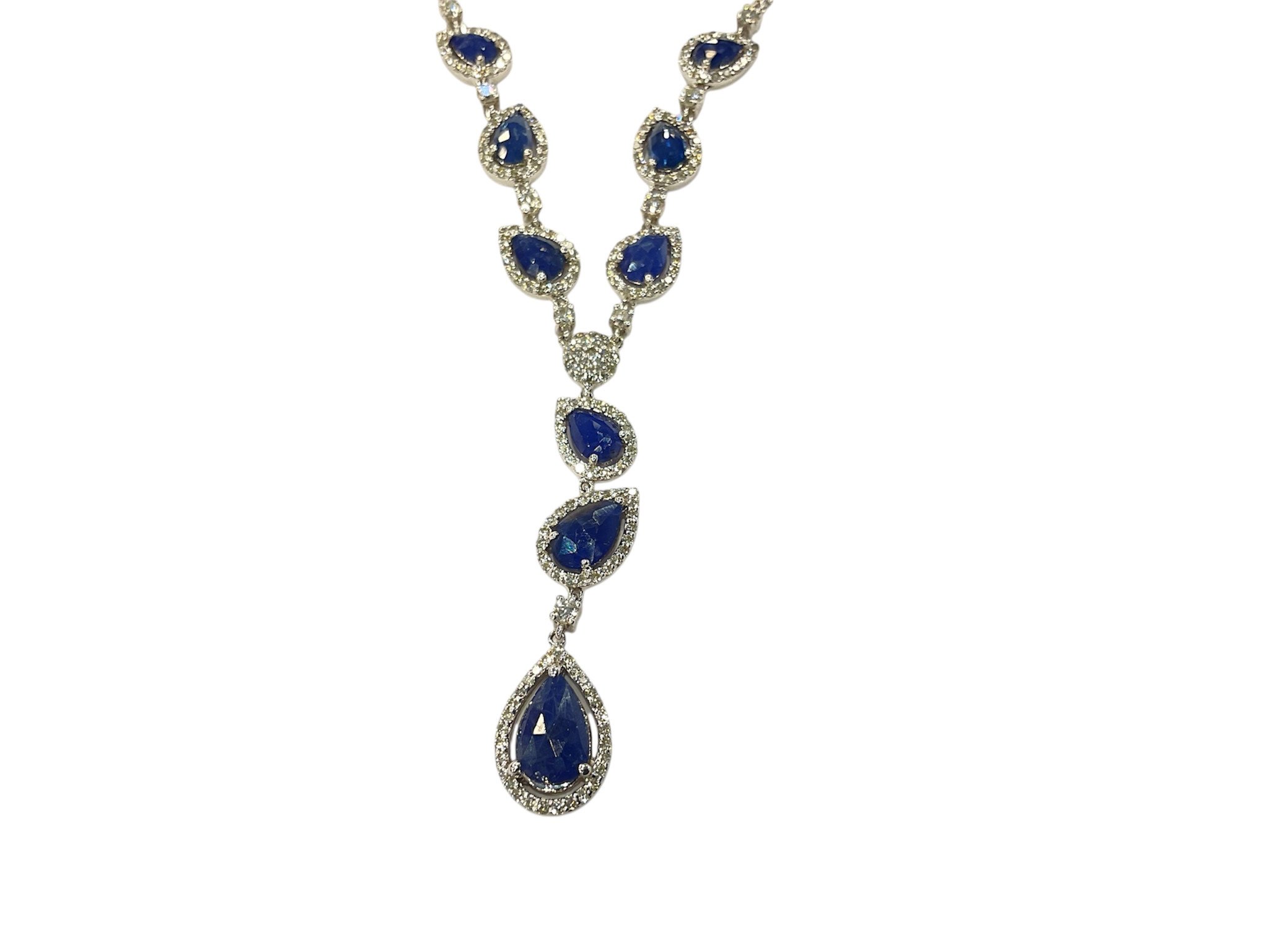 Review (Y)14K SA 5.70 DIA 1.40, DIAMOND AND SAPPHIRE NECKLACE, WHITE GOLD