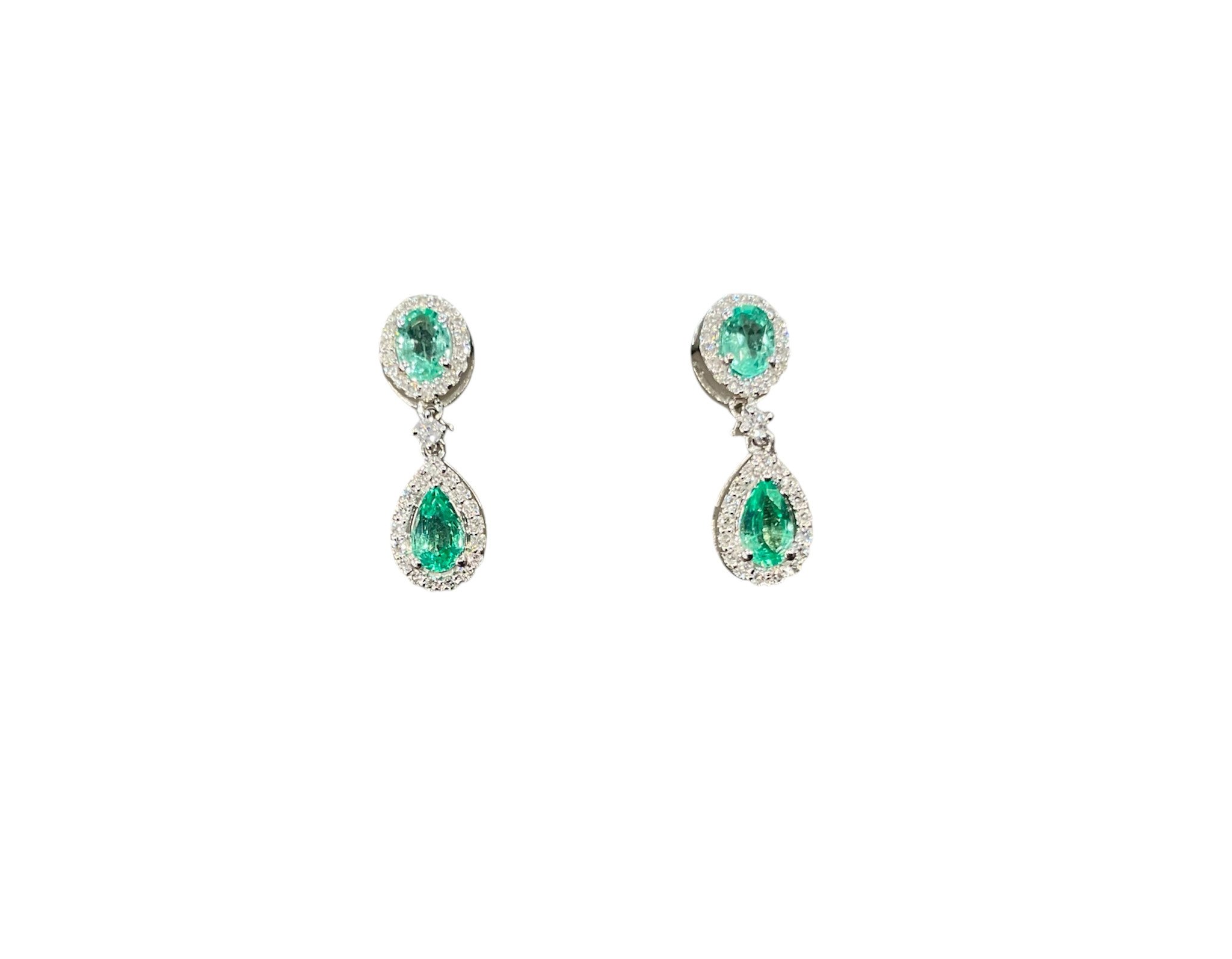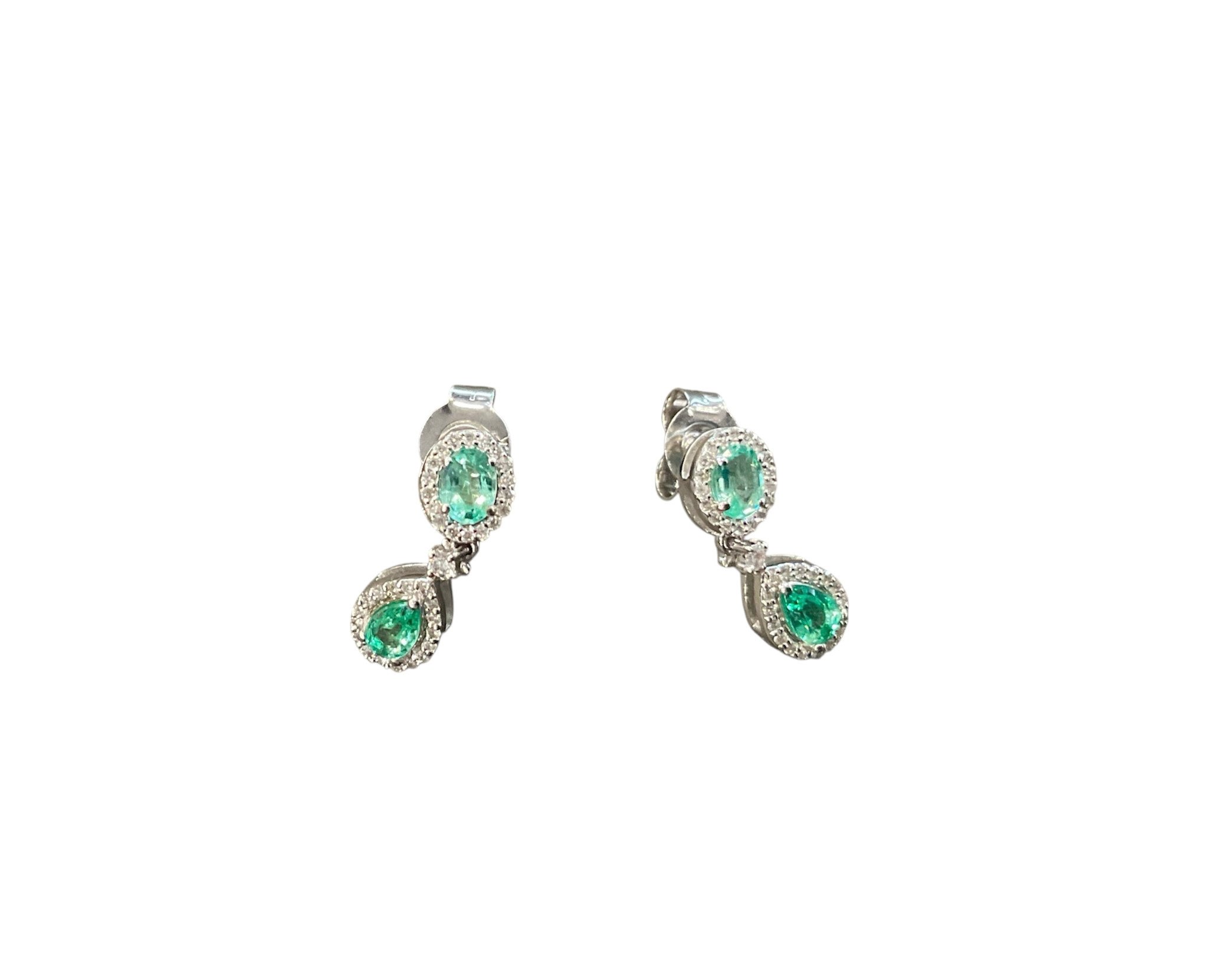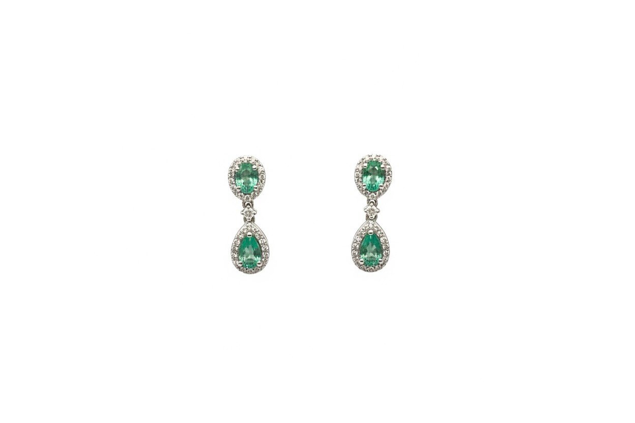 Review (Y)14KW 0.61 EMERALD 0.20 DIAMOND PEAR DROP EARRINGS
