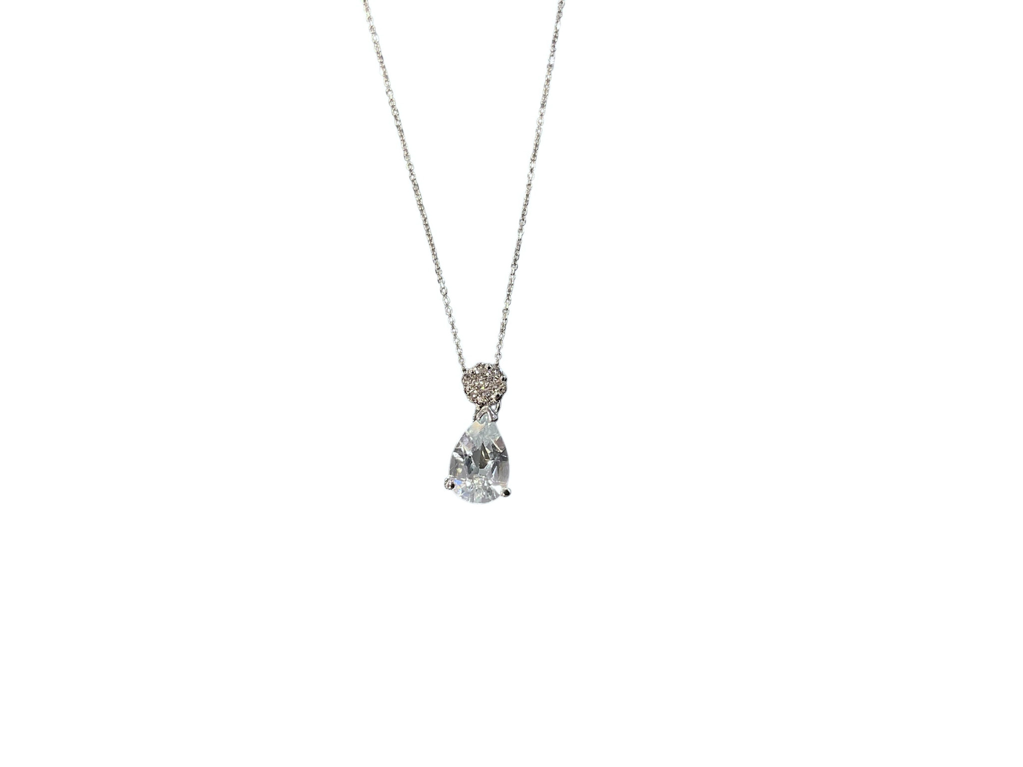 Review (Y)14KW 1.30CT AQUA .11CT DIA PEAR CUT PENDANT