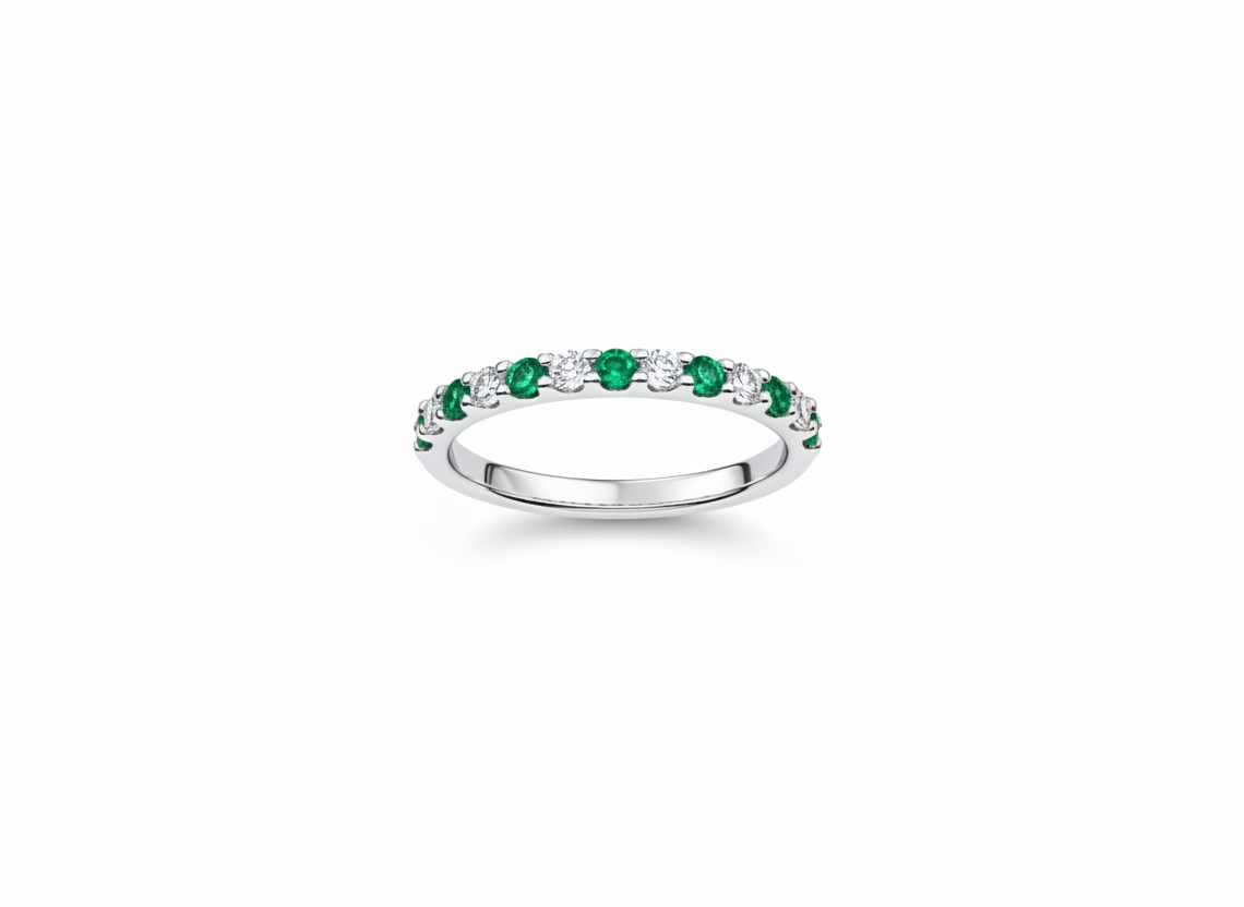 Review (Y)14KW .28EMLD .20DIA 13 PRONG ROUND DIAMOND & EMERALD RING