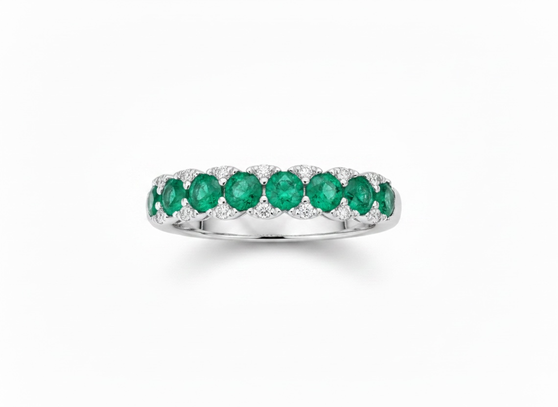 Review (Y)14KW .87EMLD .11DIA PRONG ROUND DIAMOND & EMERALD RING