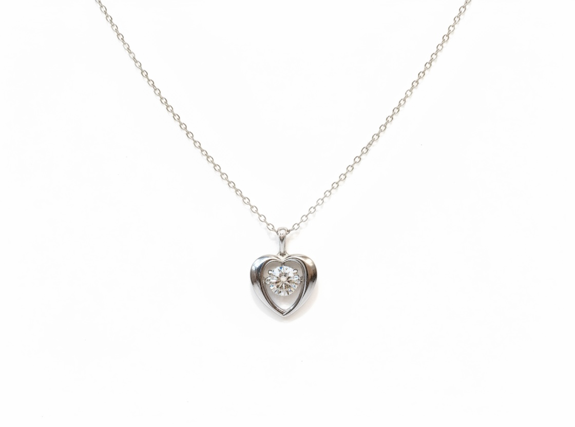 Review (Y)925 1CT LAB DIA RD, SILVER HEART NECKLACE WITH 1CT ROUND LAB GROWN DIAMOND, DANCING DIAMOND DESIGN