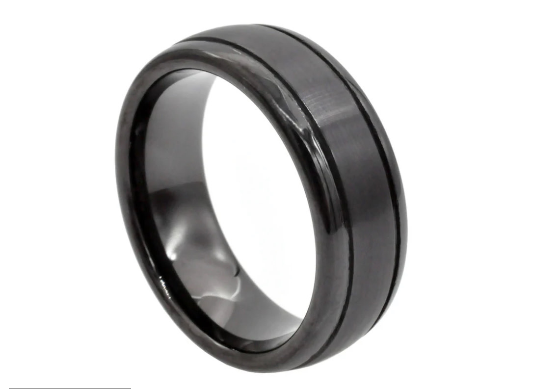 Review (Y)BJ 8MM BLK TNGSTN DOUBLE STRIPE POLISHED AND SHINED BLACK TUNGSTEN PLATED GENTS BAND