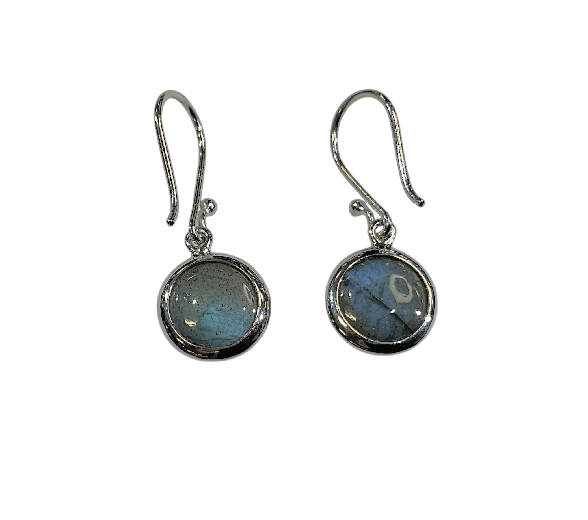 Review (Y)925 LABRADORITE ROUND CUT SILVER DANGLE EARRINGS